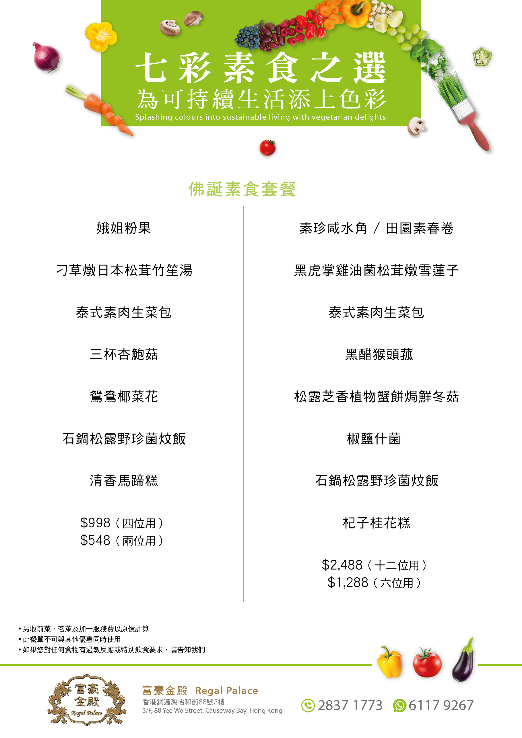 富豪金殿为您呈献两款诱人的素食菜单,展现花样百出的素食魅力。 快来享受一场健康的美食之旅,沉醉于口味丰富的素食菜肴之中。