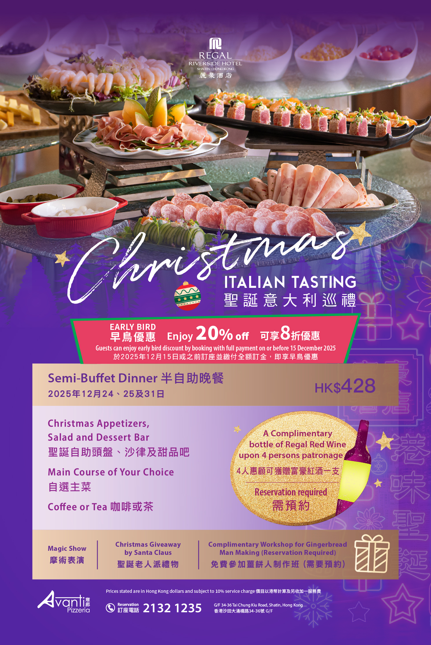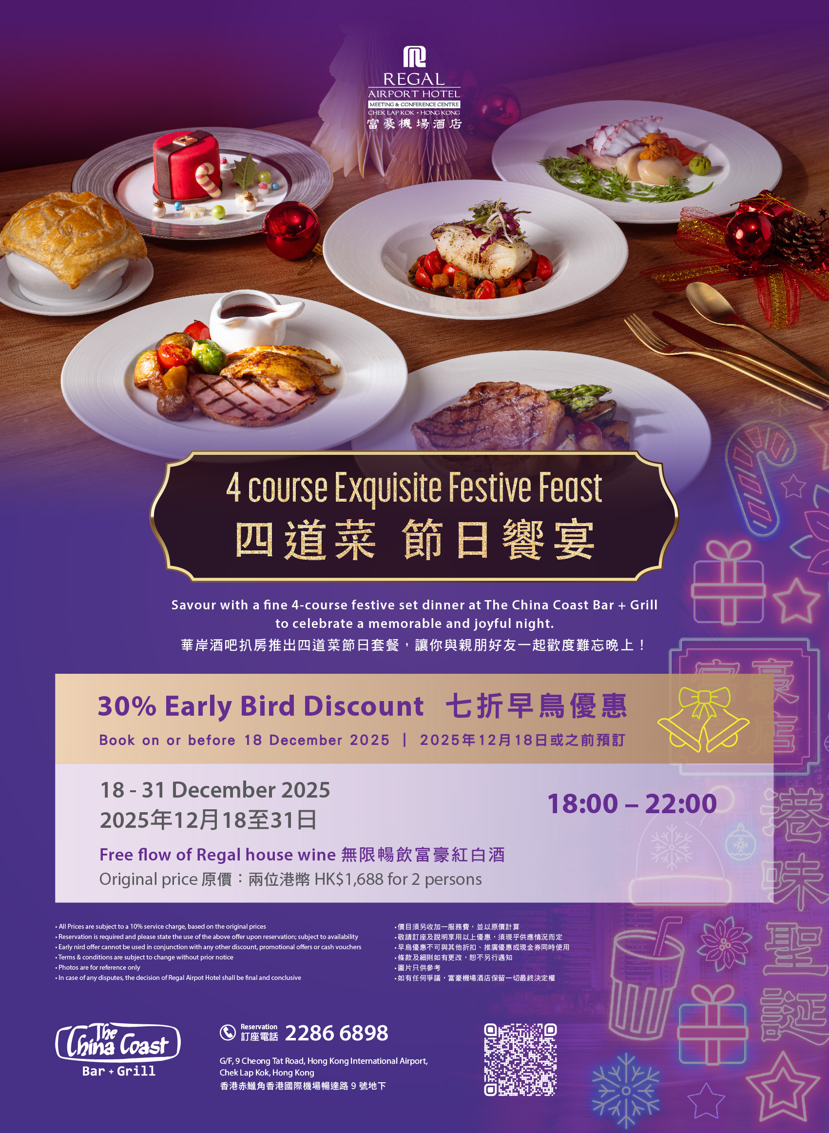 艺廊咖啡室 - 圣诞自助午晚餐 华岸酒吧扒房 - 四道菜 ‧ 圣诞飨宴 |